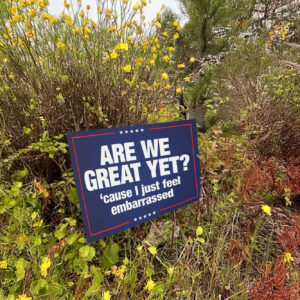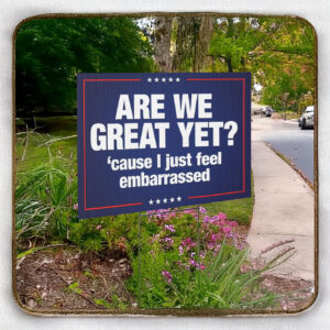 Be the first to review ““Are We Great Yet? ‘Cause I Just Feel Embarrassed Yard Sign” Cancel reply